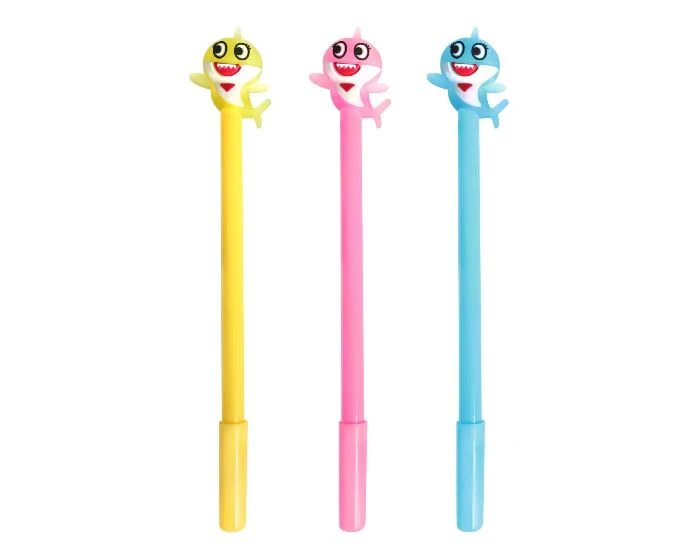 Softplastic baby shark pennen met een fijne blauwe punt. De pen is 18,5 cm lang. Een pak bevat 3 pennen. De kleuren van de pennen kunnen per pak verschillend zijn.