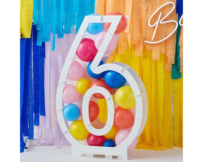 Tip: decoreer het frame met een van onze 20-delige mini metallic ballonnen sets. Met één verpakking kan je ongeveer 2 cijfers vullen.