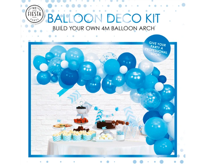 Schitterende DIY ballonnenboog. In dit blauwe ballonnenboog set zitten 70 ballonnen in de kleuren blauw, transparant en wit. Daarnaast worden 4 meter ballon tape en 40 lijmstippen geleverd om de ballonnen bij elkaar te houden.