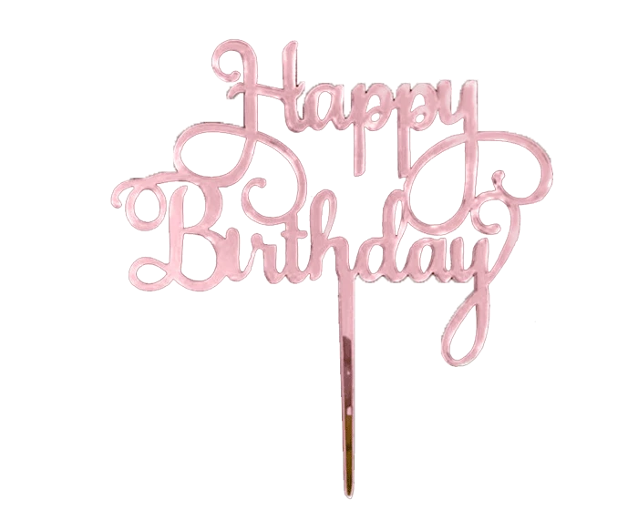 Plastic ‘Happy Birthday’ taarttopper. Laat je taart er trendy en verzorgd uitzien met deze topper! Ze zijn gemakkelijk te plaatsen op de taart en zijn eventueel herbruikbaar. De toppers zijn verkrijgbaar in het zilver, metallic goud, roségoud en mat zwart en zijn van acryl gemaakt. De topper is ca. 15,5 x 17,5cm (LxH) groot en 1 mm dik.