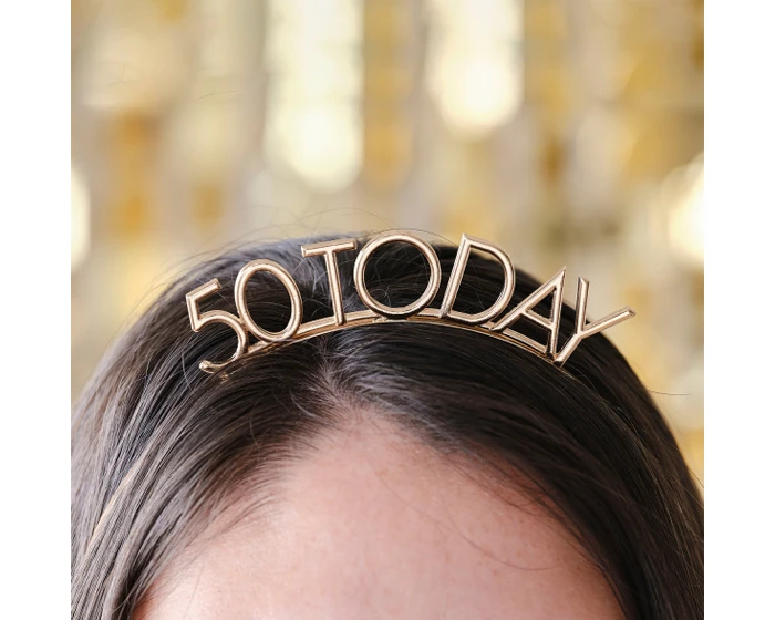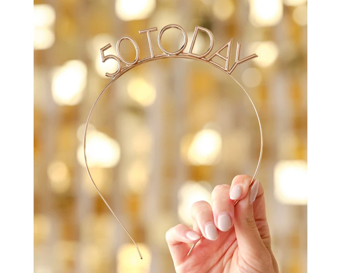 Vier je 50e verjaardag met deze elegante ’50 Today’ haarband in champagnegoude kleur. Elke verpakking bevat 1x haarband met een afmeting van 16 (h) x 13 (b) cm.
