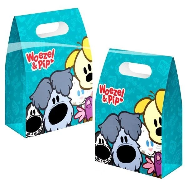 Papieren Woezel en Pip feestzakjes. Leuk om te vullen met snoepgoed en/of speelgoed en uit te delen op een kinderfeestje!