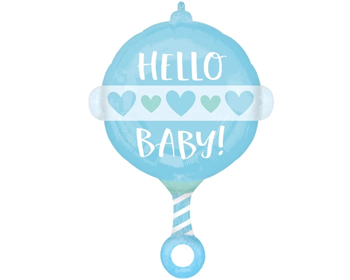 Ga je op kraamvisite? Verras de kersverse ouders met deze blauwe Hello Baby! folieballon in de vorm van een rammelaar. Ook leuk als decoratie tijdens een babyshower.