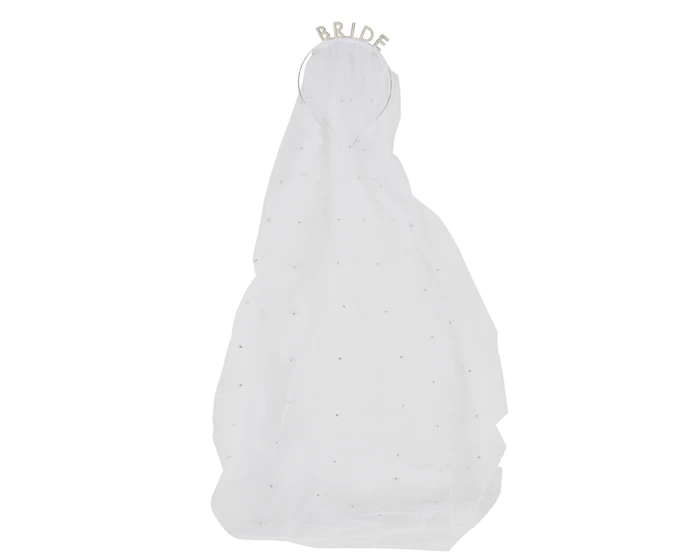 Deze prachtige haarband met sluier is een must-have accessoire voor de mooie aanstaande bruid! Elke verpakking bevat 1 bruidsluier van 17,3 cm (H) x 13,5 cm (B) met imitatieparels aan de stof.
