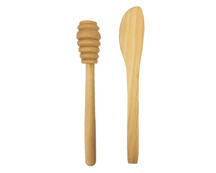 Deze houten honingstok en lepel zijn ideaal voor gebruik met honing of stroop. Het stokje heeft lengte van 14,5 cm en de lepel een lengte van 17 cm.
