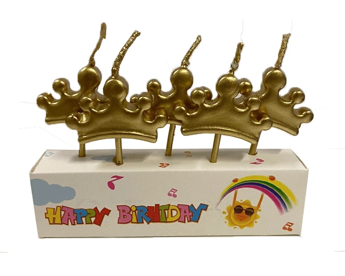 Kleine kaarsjes in de vorm van een kroontje. Een verpakking bevat 5 kaarsjes.