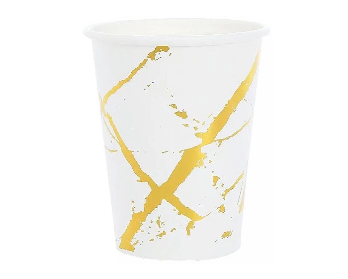 Kartonnen witte bekers met gouden marmer effect. De bekers zijn verpakt per 20 stuks.