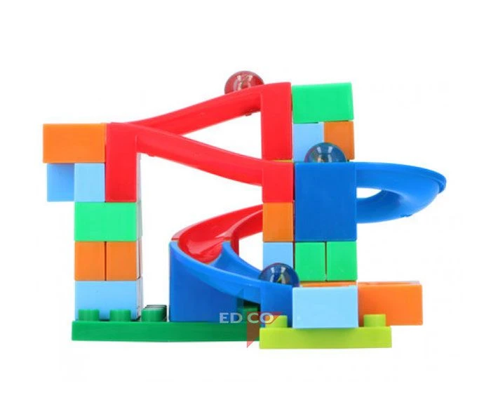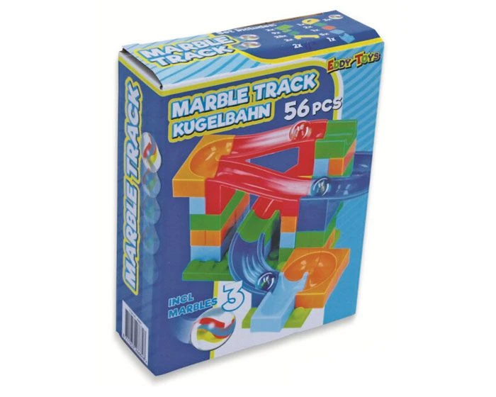 Leuke knikkerbaan bestaande uit 56 delen. De baan is gemaakt van stevig kunststof en is eenvoudig in elkaar te zetten. Inclusief 3 knikkers.