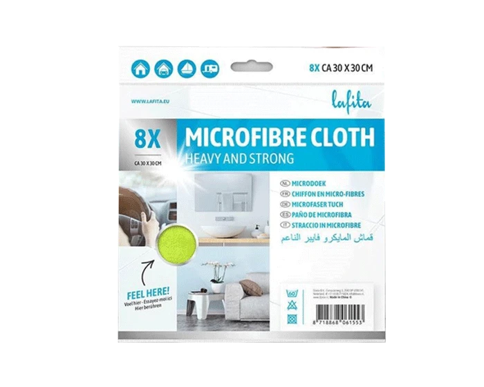 Microdoekjes van Lafita. Eén verpakking bevat 8 doekjes (30x30cm) in verschillende kleuren.Â