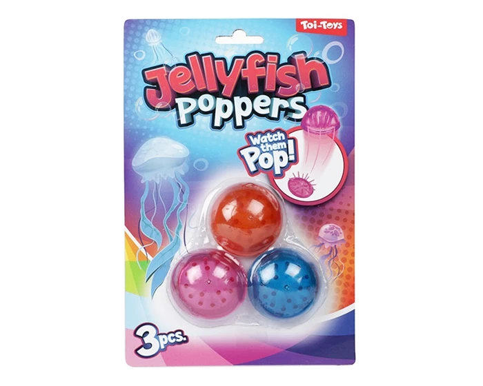 Als je deze plopper kwallen binnenstebuiten keert en neerzet springen ze superhoog de lucht in. De set bevat drie gekleurde plopperkwallen.