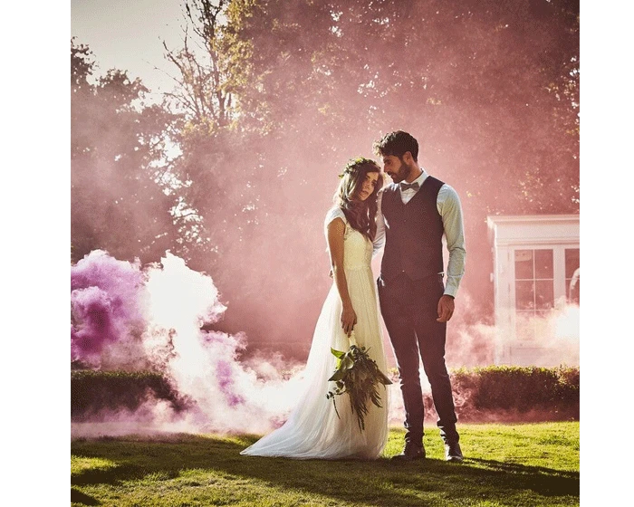 Willen jullie unieke trouwfoto’s? Dan is deze gekleurde rookbom echt iets voor op jullie bruiloft! De rookbom zorgt voor spectaculaire en magische trouwfoto’s. De rookbom is alleen voor buiten gebruik en alleen geschikt vanaf 18 jaar. Lees zorgvuldig de veiligheidsinstruties. De rookbom niet in de handhouden maar netjes op de grond plaatsen. Houd weg van het gezicht en trek stevig aan de ring. Houd het product niet vast nadat je aan de ring hebt getrokken. De rook gaat in ongeveer 60 seconden mee.