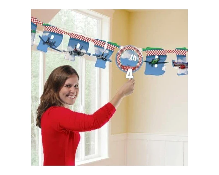 Stoere Happy Birthday slinger met Planes. De slinger is personaliseerbaar met de bijgeleverde cijfer stickers.