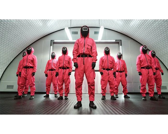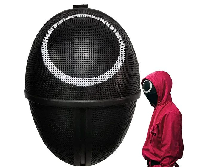 Verkleed je als een van de personages uit de Koreaanse Netflix hitserie ‘Squid Game’ met deze zwarte masker met een cirkel symbool.Â